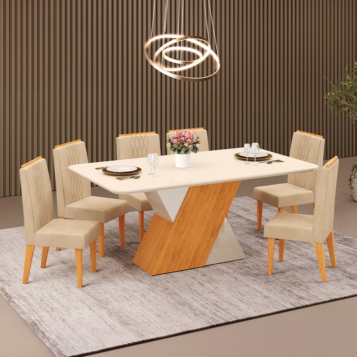 Sala de Jantar Dj Móveis Rubi Tampo Chanfrado Curvo 170x0,25 com 6 Cadeiras Lia