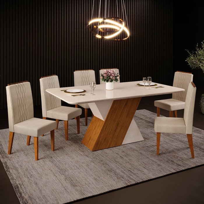 Sala de Jantar DJ Móveis Rubi Tampo Chanfrado Curvo 170x0,25 com 6 Cadeiras Lia