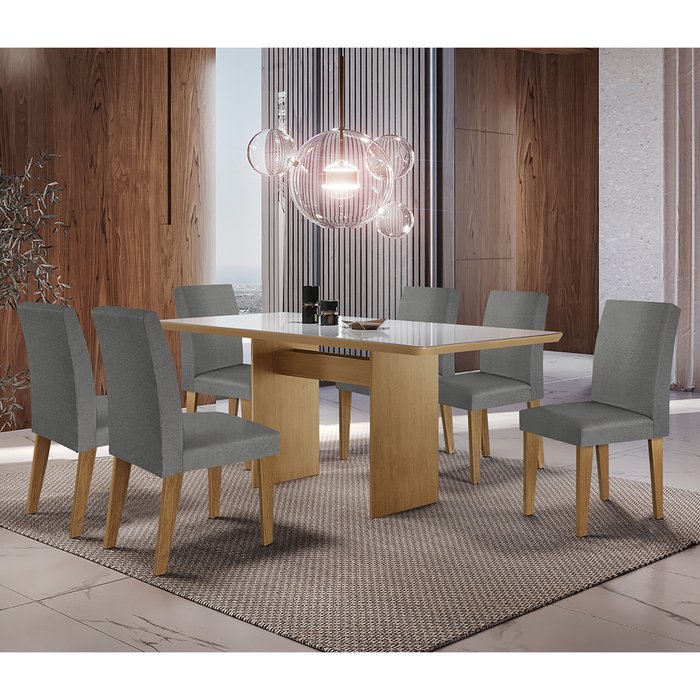 Sala de Jantar Grécia 180 Cm Tampo Mdf Vidro 6 Cadeiras Grécia Rufato