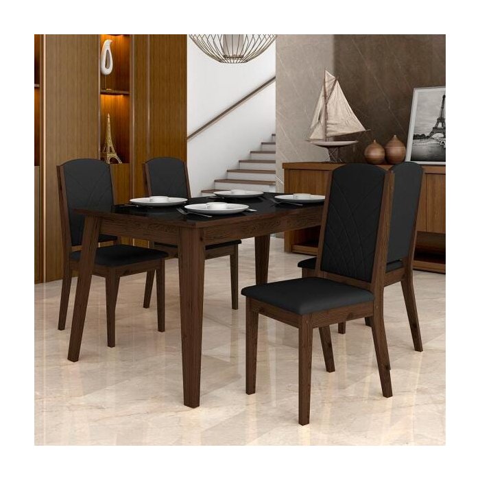 Sala de Jantar Lidia 4 Cadeiras Imbuia/preto - Móveis Arapongas Imbuia/preto/preto