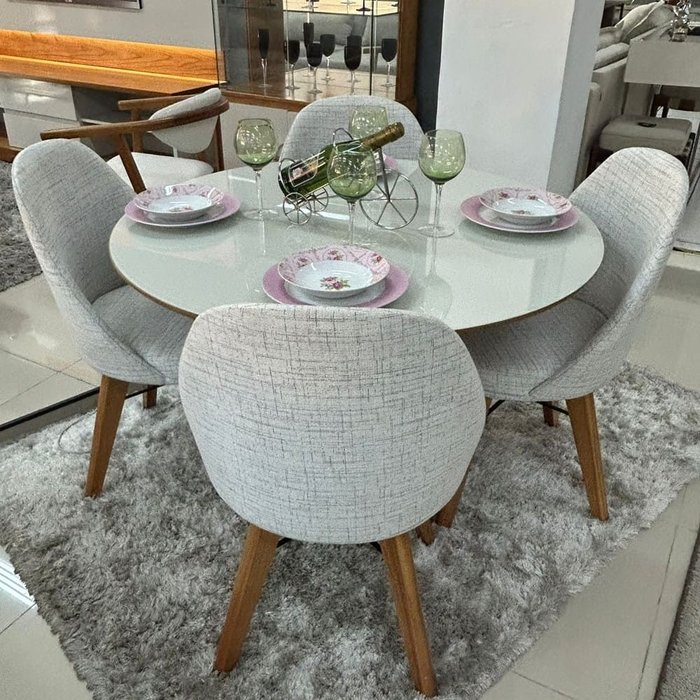 Sala de Jantar Mesa Redonda Bella 111 e 4 Cadeiras Dilly Fixas