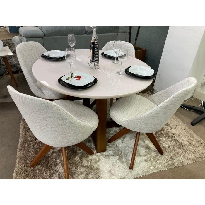 Sala de Jantar Mesa Redonda Rose e 4 Cadeiras Dilly Giratórias D'confort Design Suede Marrom 77