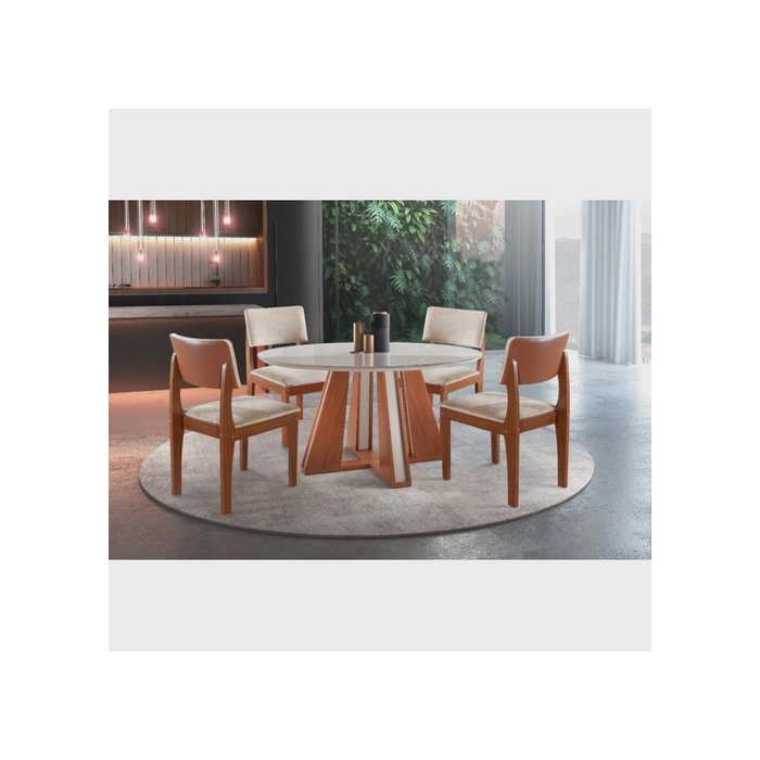 Sala de Jantar redonda Completa com 4 Cadeiras 1,10x1,10m - Rubi Turim bege bege