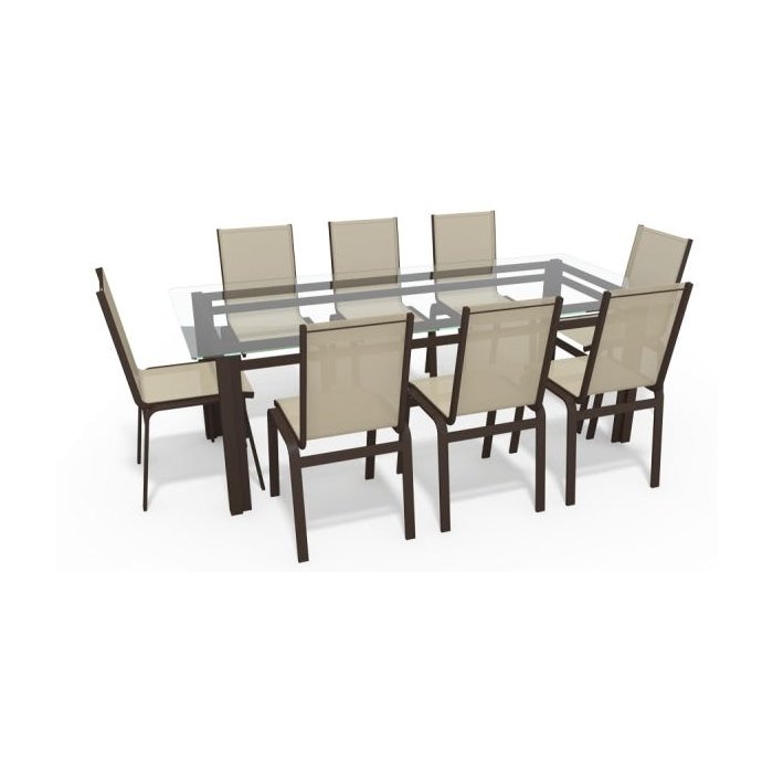 Sala Jantar Retangular 8 Lugares Alumínio Marrom Tela Bege