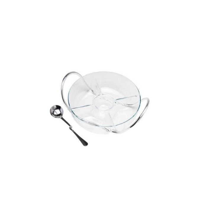 Saladeira Wolff de Inox C/Concha Para Molho e 5 Divisões 28cm