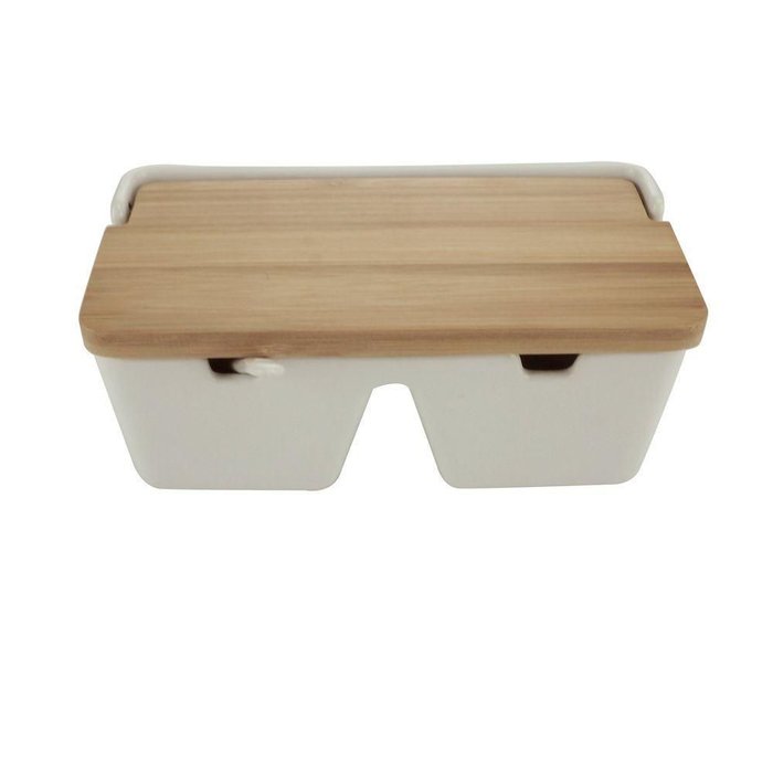 Saleiro de Mesa com Duas Divisórias de Porcelana com Bambu 8569 - Lyor Branco