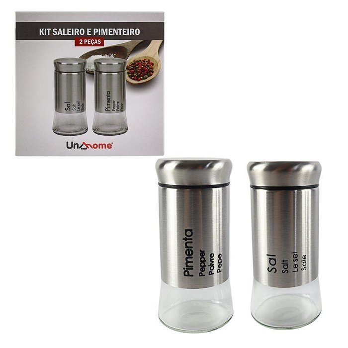 Kit saleiro e pimenteiro de duas peças, perfeito para complementar qualquer refeição com estilo e funcionalidade.Este conjunto é composto por duas pequenas garrafas de vidro transparente, cada uma com capacidade ideal para armazenar sal e pimenta de forma conveniente. Cada garrafa possui uma tampa de aço inoxidável que não só mantém o conteúdo fresco e protegido, mas também adiciona um acabamento brilhante e durável ao conjunto, o design compacto das garrafas facilita o manuseio e o armazenamento, ocupando pouco espaço na mesa ou na bancada da cozinha. Seu tamanho prático torna-os ideais tanto para uso diário quanto para ocasiões especiais.A forma clássica e simples das garrafas combina harmoniosamente com qualquer decoração de mesa, enquanto os detalhes em aço inoxidável adicionam um toque de elegância discreta. O sistema de abertura fácil permite um controle preciso da quantidade de sal e pimenta a ser dispensada, garantindo uma experiência culinária personalizada. Dimensões; Pote Saleiro: Alt:11cm x Larg:5cm x Comp:5cm Peso aprox. 0,155gr.Pote Pimenteiro : Alt:11cm x Larg:5cm x Comp:5cm Peso aprox. 0,155gr. Contém; 01 KIT SALEIRO E PIMENTEIRO 2 PEÇAS.