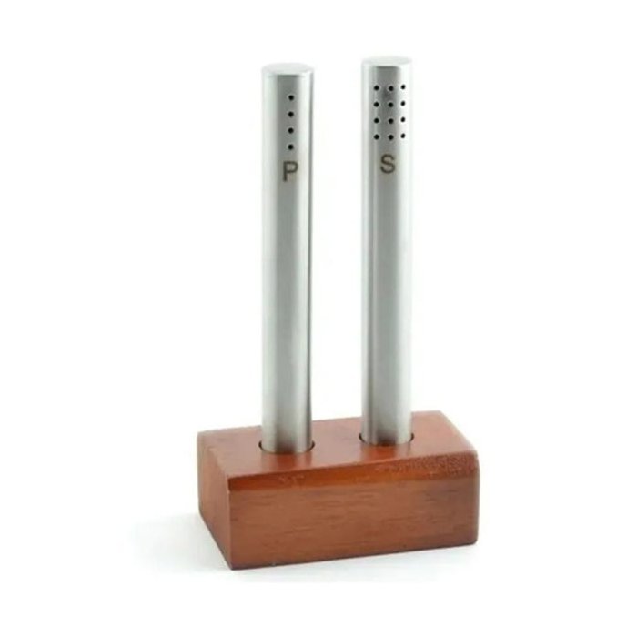 Saleiro Pimenteiro de Inox com Base em Madeira