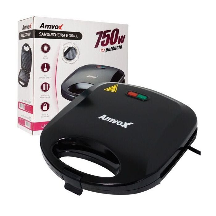 Sanduicheira e Grill Elétrica 110v 127v 750w Dupla Antiaderente Amvox Ams 370 New Preta