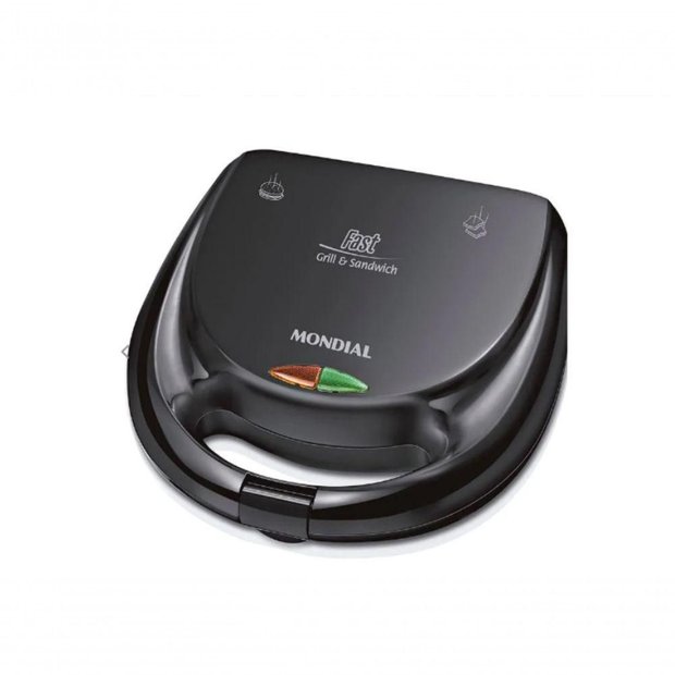 Sanduicheira Fast Grill Sandwich Mondial S12 750W Preto 110VPara mais praticidade e sabor no seu dia a dia, conte com a Sanduicheira Fast Grill e Sandwich Mondial. Com 750W de potência e aquecimento nas duas chapas, grelha os alimentos dos dois lados com mais agilidade. Modelo 2 em 1, pode ser usada como grill e como sanduicheira. Além disso, o revestimento antiaderente evita que os alimentos grudem e facilita a hora da limpeza. Saiba mais sobre a S-12 da Mondial: