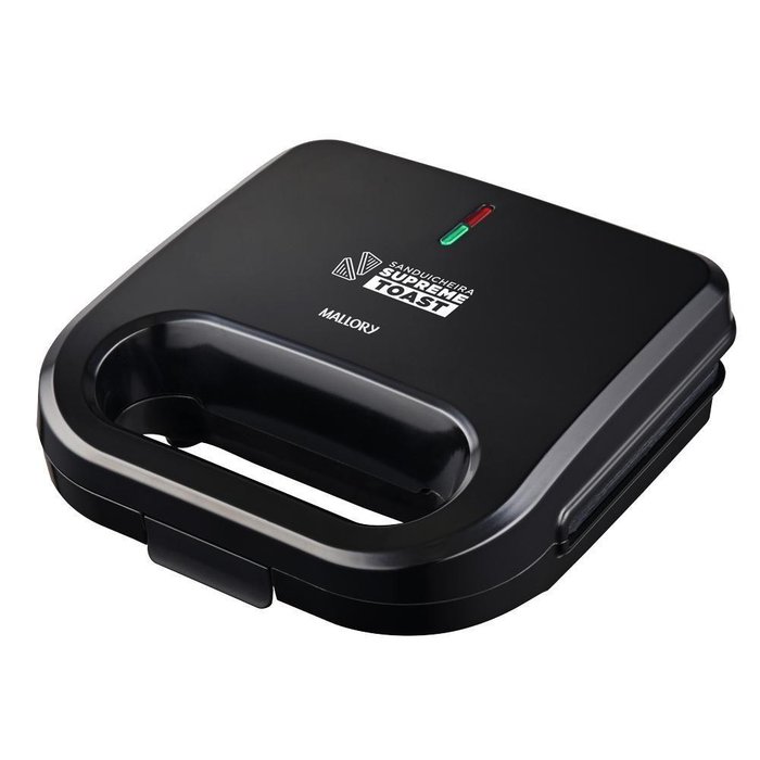 Sanduicheira Mallory Supreme Toast Placas Antiaderentes Que Cortam O Pão 220VA sanduicheira Supreme Toast Mallory prepara sanduíches com praticidade. Com 750W de potência, as chapas cortam e aquecem o alimento por igual dos dois lados. O revestimento antiaderente possibilita preparar seus alimentos sem grudar e facilita na hora de limpar.Sua alça fria e trava garantem maior segurança ao manusear ao abrir e fechar a sanduicheira. Luzes indicadoras de funcionamento e controle de temperatura automático tornam o uso ainda mais prático.Especificações:Marca: Mallory