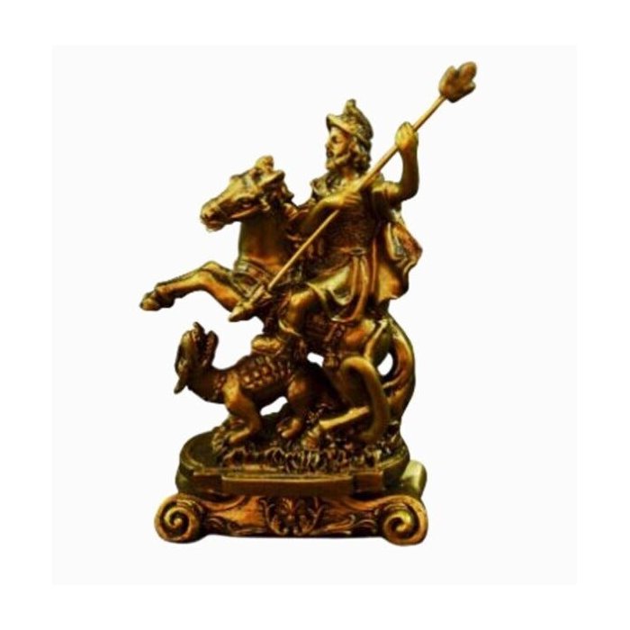 São Jorge Guerreiro Imagem Santo Estátua Dourada Resina