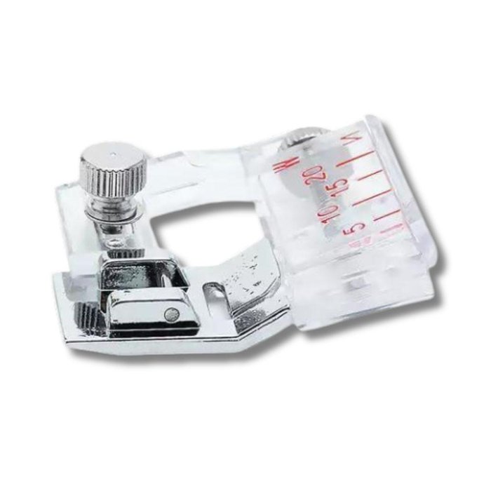 Calcador de Viés com Regulagem Lanmax 6290Contém: 1 unidade Guia e executa a colocação do Viés. A finalização da peça ficará muito mais simples e rápida com a utilização deste acessório. O calcador deve ser fixado na máquina de costura. Indicado para máquinas domésticas. Possui regulagem de 5 a 20mm.