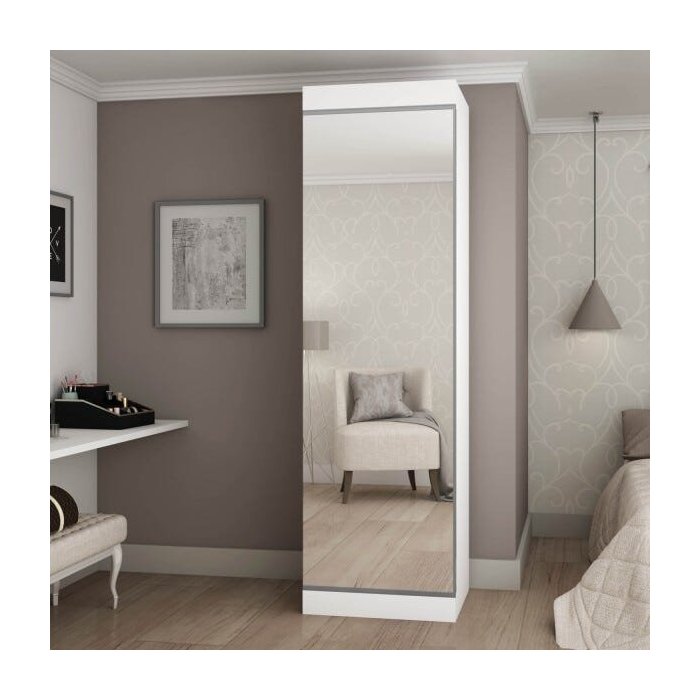 Sapateira 1 Porta com Espelho Esmeralda Gelius Móveis Branco Acetinado