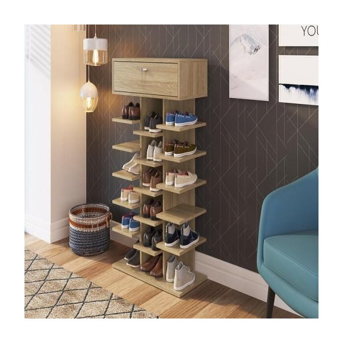 Sapateira 15 Prateleiras 01 Gaveta 68cm Linha Sp Sp020 Completa Móveis - Oak