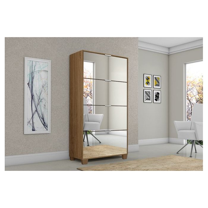 Sapateira 4 Portas com Espelho para 24 Pares 156cm X 66cm Pequim - Rede Móveis Madeirado