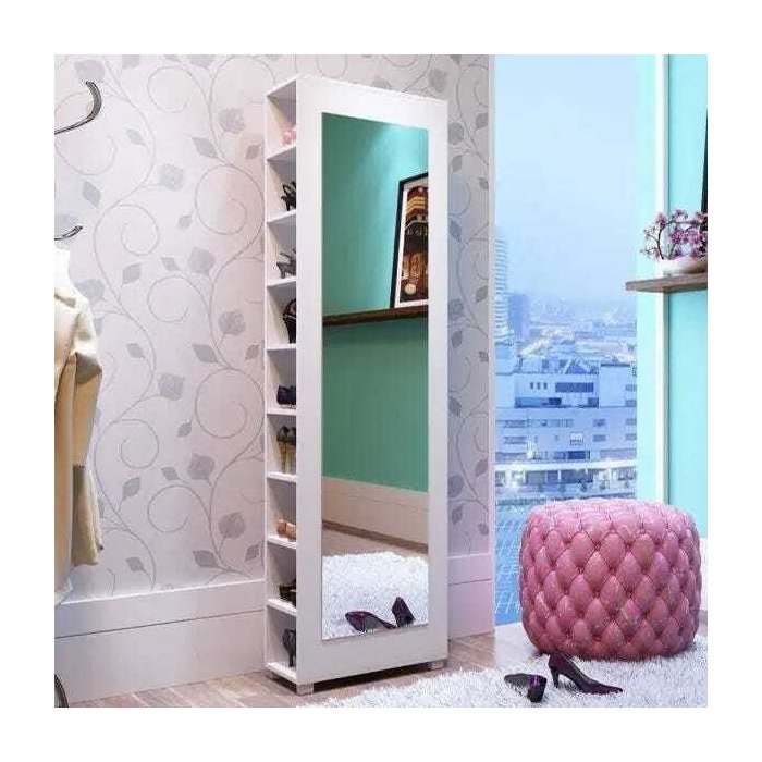 Sapateira com Espelho e 8 Prateleiras BST 14 - Branco