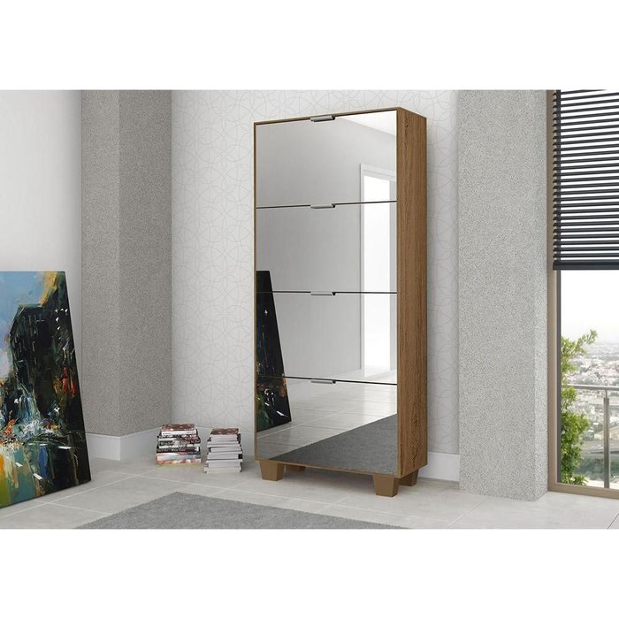 Sapateira Armário Multiuso Londres Com Espelho Ferrara Madeirado