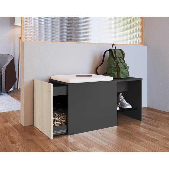 Sapateira Banco com Futon Extensível Flow Grafite/Nature