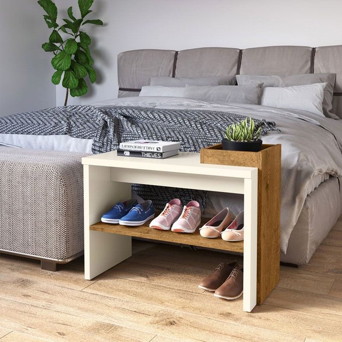 Sapateira Banco para Hall de Entrada Quarto com Nicho Londres - Off White/freijo