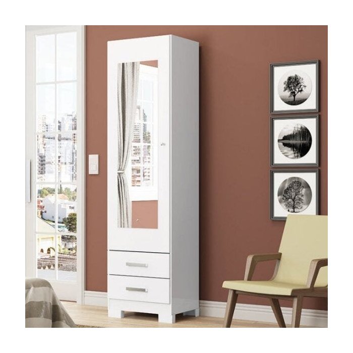 Sapateira com Espelho 1 Porta 2 Gavetas Leon Henn Branco