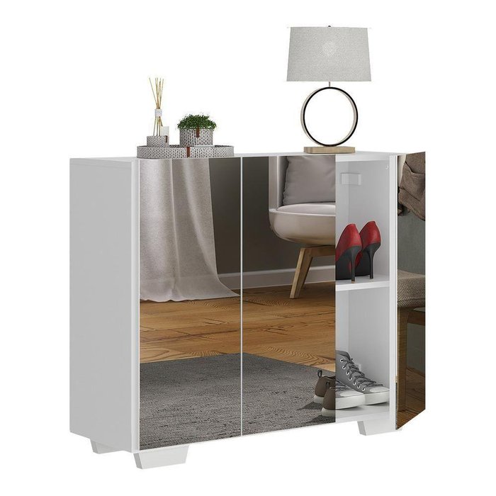 Sapateira Com Espelho 3 Portas Nina Multimóveis V6023 Branca Branco Branco