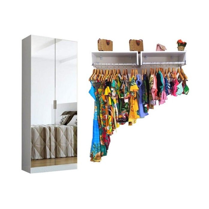 Sapateira com Espelho Linda + 2 Araras de 60cm BRANCA