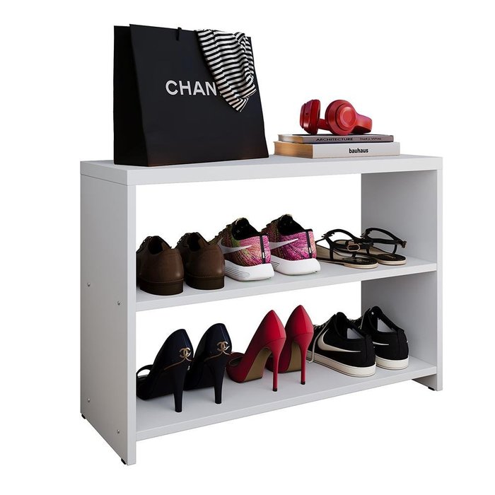 Dispõe de 2 amplos compartimentos, ideias para acomodar até 6 pares de calçados. Seu tampo pode ser utilizado como assento, auxiliando na hora de calçar os sapatos e também pode ser usado para armazenar itens decorativos ou como um espaço extra para os calçados.