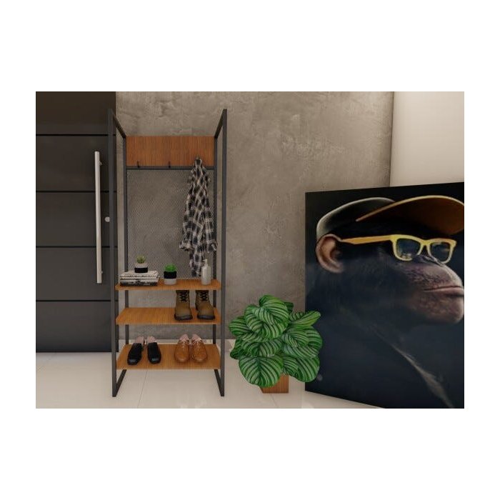 Sapateira de Madeira e Ferro Estilo Industrial - Tendenci - Crater - Cumaru