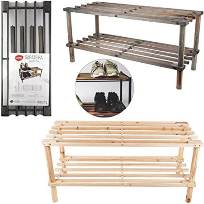 SAPATEIRA DE MADEIRA ORGANIZADOR ESTANTE 2 PRATELEIRAS MULTIUSO SAPATOS OBJETOS RUSTICA Cinza
