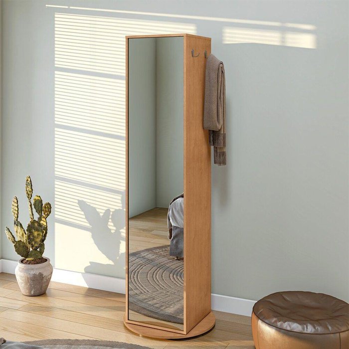 Sapateira Esthela Com Espelho E Base Giratória Móveis Lopas Amendoa Clean