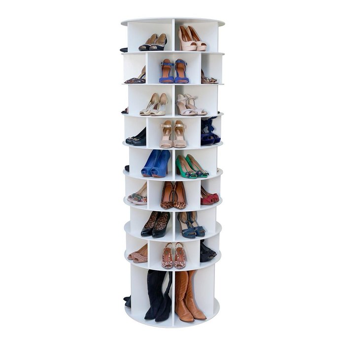 A Sapateira já vai praticamente montada, parte inferior e superior!!!Utensílio doméstico para guardar calçados, elegante e com muita praticidade utilitária, 100% em MDF, redonda, e suspensa por uma base de rodízio de metal, com giro de 360º graus, que suporta até 200 Kg, com capacidade de acondicionamento em compartimentos para 54 pares.-Diâmetro: 70cmx70cm-Altura: 2,05m-Capacidade de acondicionamento em compartimentos 54 pares-Capacidade de peso: 200kg-Material: 100% MDF-Garantia: 03 meses contra defeitos de fabricaçãoObservações:-Nós trabalhamos com embalagens seguras e tomamos o máximo de cuidado na hora de enviar o seu produto, afim de garantir a segurança do mesmo;-Qualquer desmontagem e nova montagem de instalação do produto não são responsabilidade da empresa;-Imagens meramente ilustrativas, calçados não acompanham o produto.Atenção:- Confira as dimensões do produto e certifique-se de que estão adequadas aos elevadores, portas e corredores do local de entrega, pois não fazemos a montagem, desmontagem do produto e/ou portas e janelas, transporte pela escada/elevadores ou içamento pelo lado de fora do prédio. As entregas em prédios ou locais com mais de 1 (um) andar, é feita na portaria/térreo, ficando por conta do cliente o transporte até seu apartamento.