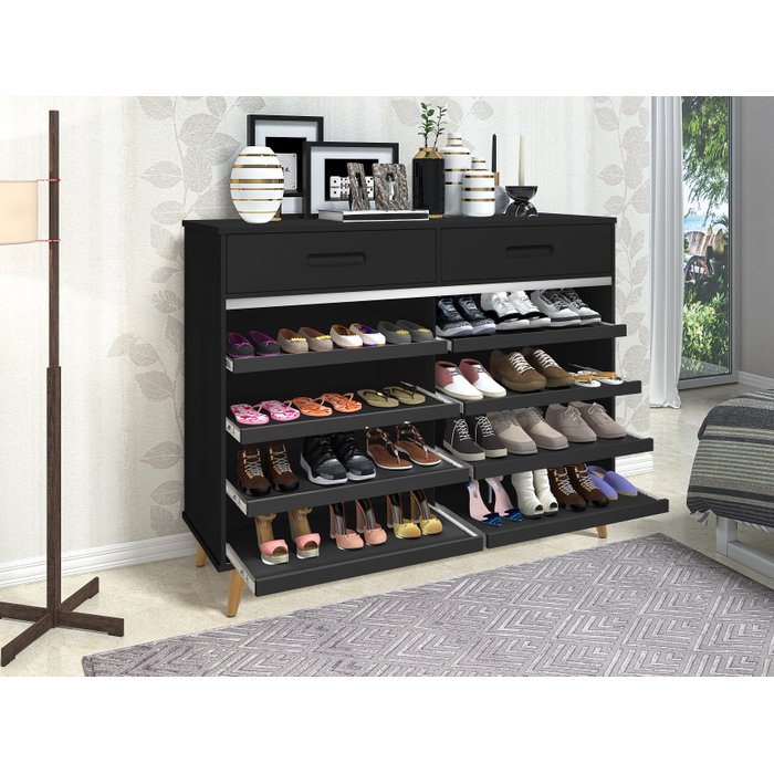 Sapateira Grécia 2 Portas de Correr - 2 Gavetas -Preto -35 pares de Sapato 100%MDF