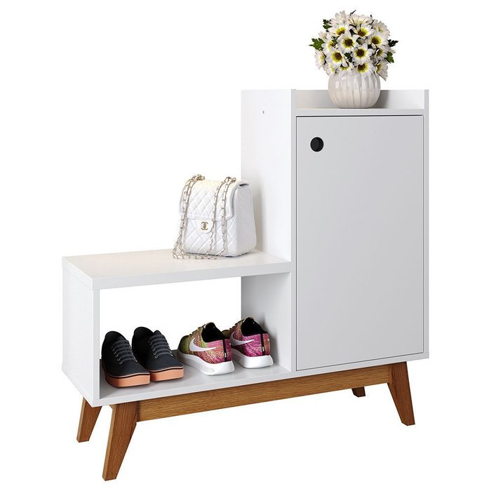 Sapateira Hall de Entrada Organizador Sala Quarto Prateleira 1 Porta Banquinho Sapato Nicho Shoes -