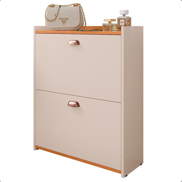 Sapateira Hall Entrada Sapatos 2 Portas Puxador Concha Closet - Off White / Cinamomo Off White / Cinamomo