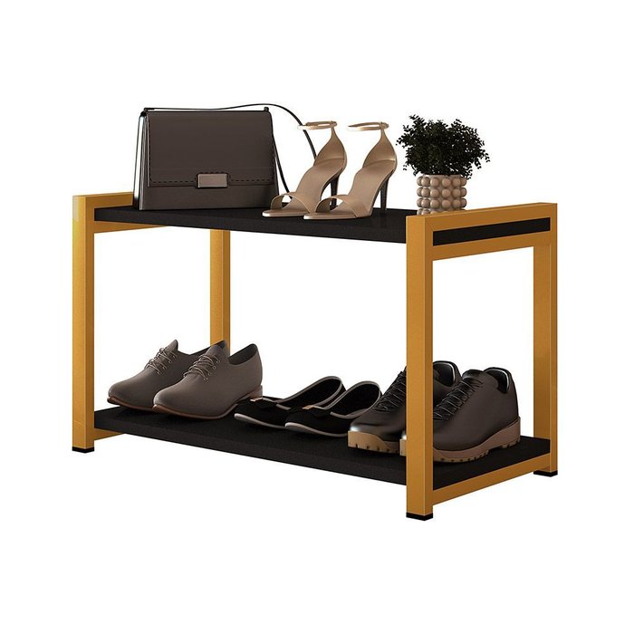 Sapateira Industrial 2 Lugares Organizada Duarte Móveis - Dourado/preto