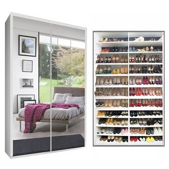 Sapateira Diamante 2 Portas de Correr com Espelho Inteiriço e Luzes de Led, para até 100 pares de calçados.