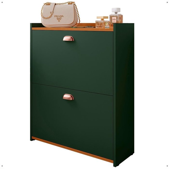 Sapateira Organizadora Pequena Apartamento 12 Pares Calçados Gavetas Basculante Decoração Quarto Verde/Cedro