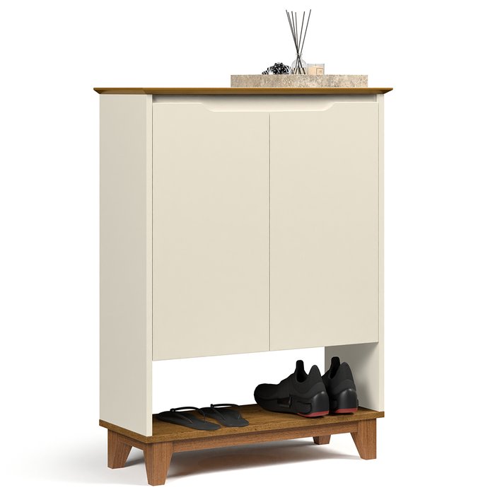 Sapateira para Hall de Entrada Quarto 68cm Flow Off/freijó - Ej Móveis Off White/Freijó