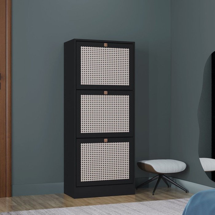 Sapateira para Quarto Basculante 3 Portas Tropical Preto