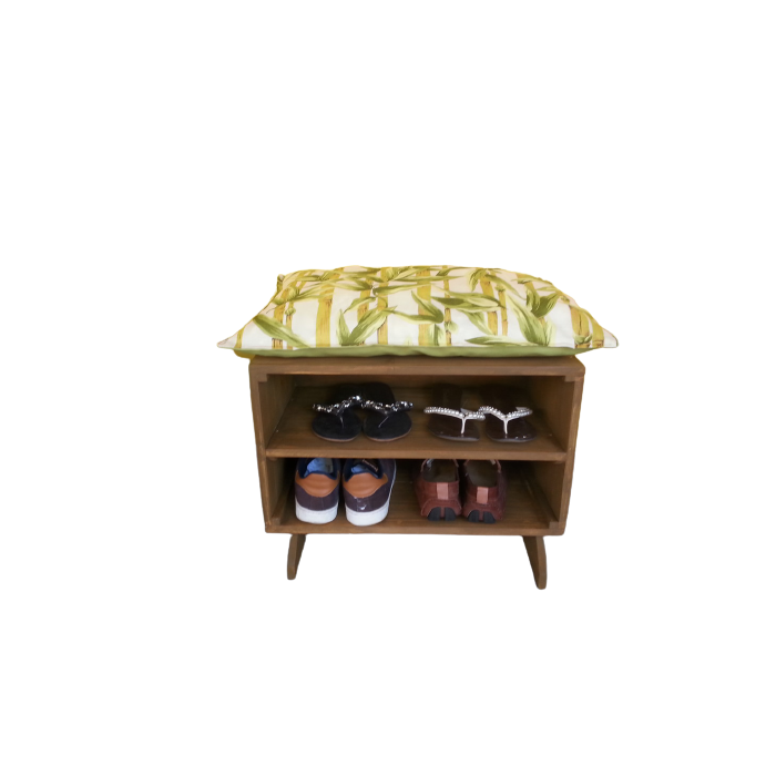 Lindo, robusto e charmoso, este puff sapateira é super resistente. Feito com madeira maciça de reflorestamento, é ecologicamente correto.Fica perfeito em qualquer ambiente, além de super útil!Muito versátil, este puff pode ser usado como porta livros, cds e dvs, revisteiro, sapateira, enfim..é só usar sua criatividade, escolher um espaço bem charmoso e terá uma peça bem funcional e bonita na sua decoração!É entregue montado, só é necessário parafusar o pé.Suporta em torno de 95kg.Acompanha almofada estampa bambu.A medida da altura é feita com o pé.