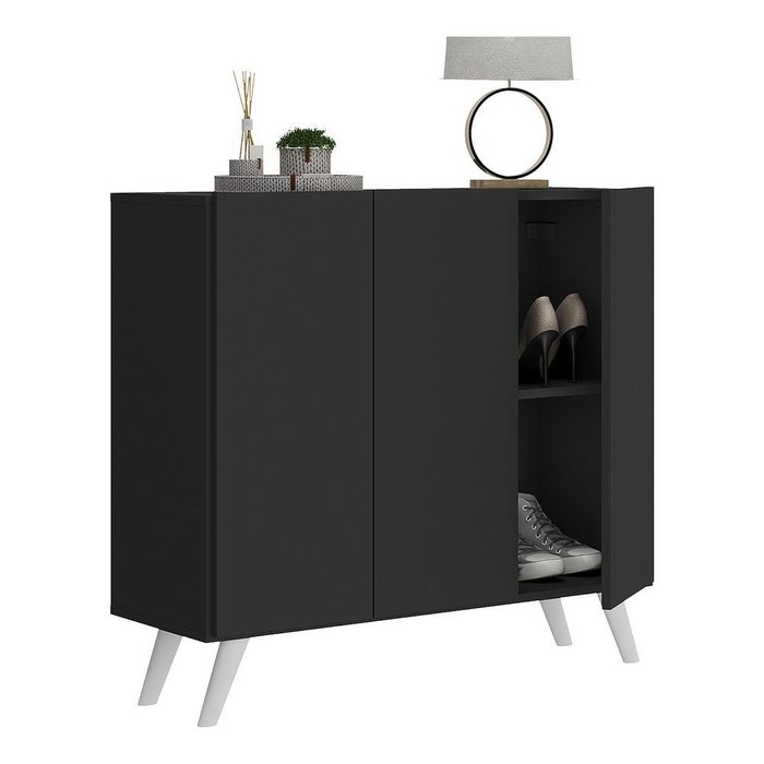 Sapateira Retrô 3 Portas Nina Multimóveis V6018 Preta/Branca