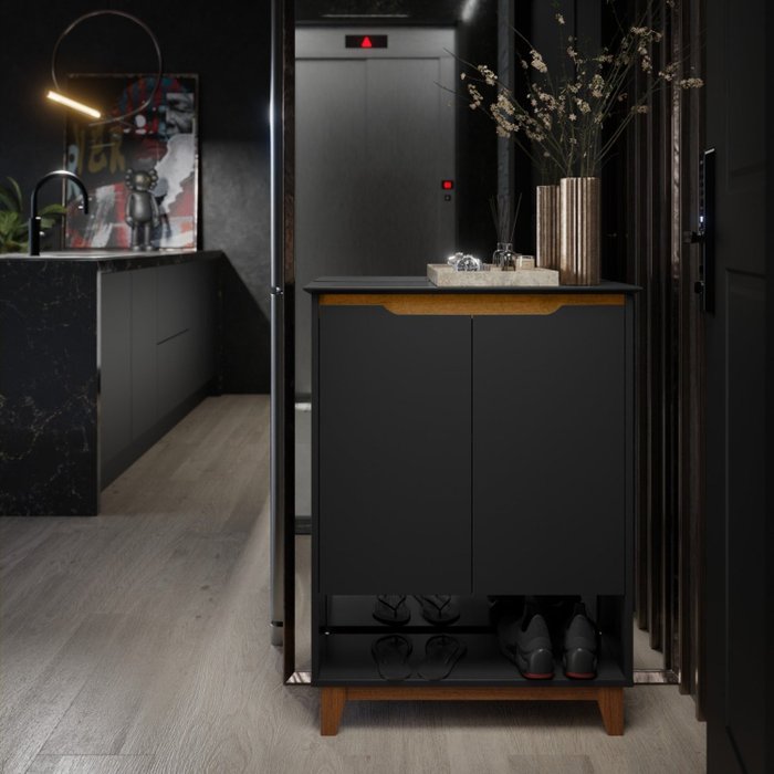 Sapateira Retrô Hall De Entrada Pés em Madeira Flow Preto
