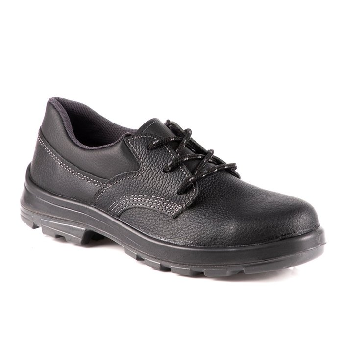 SAPATO DE PROTEÇÃO DE AMARRAR, COM COLARINHO ACOLCHOADO, CONFECCIONADO EM COURO ESTAMPA RELAX, FORRAÇÃO INTERNA DA GÁSPEA EM NÃO TECIDO E FORRO DO CANO EM TECIDO COM ALTO PODER DE ABSOÇÃO.