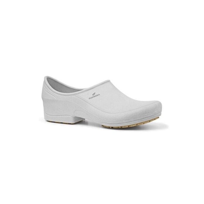 Descrição A linha Moov foi desenvolvida para profissionais que querem mover-se com segurança e leveza. Produzidos em TRP-EXP, um avançado composto de termoplástico expandido que garantem impermeabilidade e flexibilidade, os modelos se adaptam perfeitamente aos pés do usuário, com aderência e conforto ao caminhar. Com solados que não escorregam, os Calçados Antiderrapantes Fujiwara são os únicos do mercado feitos com o plástico TRP-EXP. Além de ser muito mais leves, permitem a esterilização por mais tempo sem estragar. Com solado confeccionado em Grip Rubber Flex in Natura, garante uma proteção 360 graus, enquanto o sistema de micro ranhuras transversais permite proteção contra derrapagens em todas as direções. Aplicação: - Hospitais e consultórios; - Indústrias alimentícias; - Cozinhas industriais; - Hotelaria; - Restaurantes; - Padarias; - Supermercados; - Serviços em geral. Especificação técnica CA: 38590 Biqueira: Sem Material do cabedal: TRP-EXP Solado: Antiderrapante Gênero: Unissex Cor: Branco