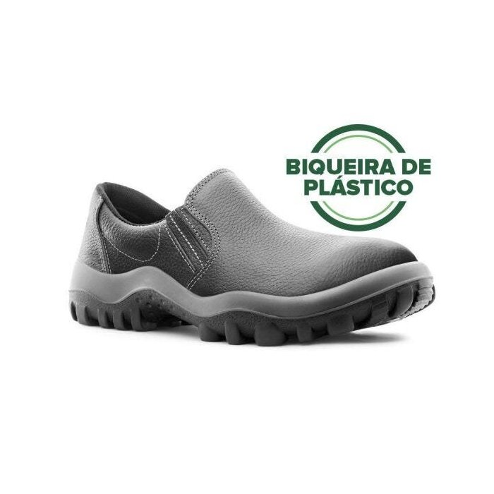 O sapato tipo tênis com elásticos é confeccionado com vaqueta hidrofugada e totalmente forrado com SafetDry. Possui gáspea inteira e acolchoada desenvolvida para proporcionar fácil higienização e maior resistência em trabalhos com água. O modelo tem sistema de fechamento calce rápido, com elásticos laterais de trama dupla, recoberto com couro. O forro da gáspea é em não tecido. Confortável e durável, o calçado também tem cano acolchoado com espuma e calcanhar forrado com camurça. A palmilha de montagem em não tecido é costurada no sistema strobel, e a palmilha higiênica é antibacteriana e removível. O cabedal tem costuras simples e duplas feitas com linhas de nylon de alta tenacidade.