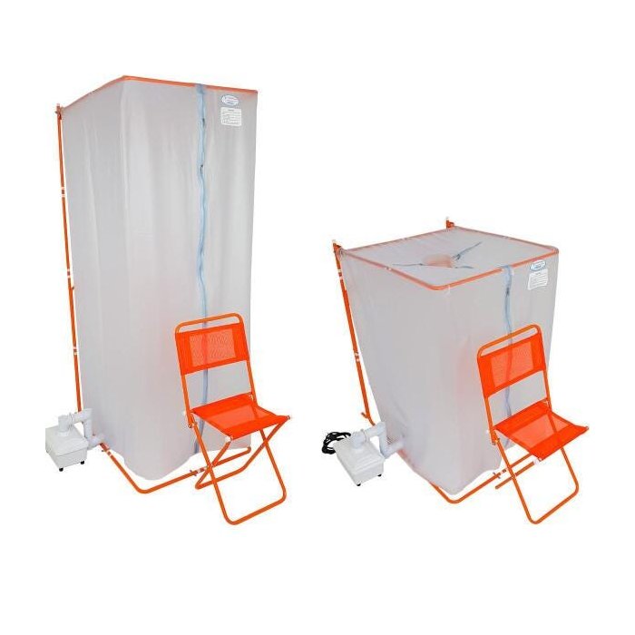 • Capacidade dentro da sauna: uma (1) pessoa. O corpo fica inteiro dentro da cabine plástica. Na sauna ayurvédica a cabeça fica fora da cabine.