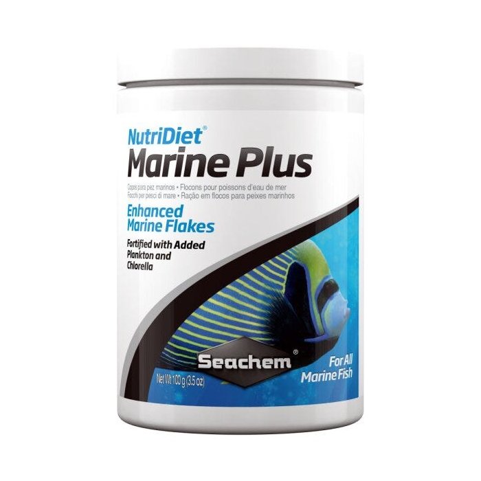 O NutriDiet Marine Plus Flakes é uma dieta premium e nutricionalmente equilibrada, formulada para atender aos requisitos de todos os peixes marinhos. Contém apenas ingredientes da mais alta qualidade, incluindo peixe, plâncton, lula e camarão. Assim como todos os Seachem NutriDiets, os Marine Plus Flakes têm as Chlorella Algae como uma fonte excepcional de uma ampla gama de vitaminas, aminoácidos e todos os outros nutrientes necessários para a vida animal. A Chlorella Algae é considerada um superalimento potencial que ultrapassa em muito os nutrientes fornecidos pela Spirulina Algae comum a outras dietas. É aprimorado com o Entice para atrair comedores mimados e melhorar a palatabilidade. Além disso, os Marine Plus Flakes contêm GarlicGuard como estimulante do apetite.