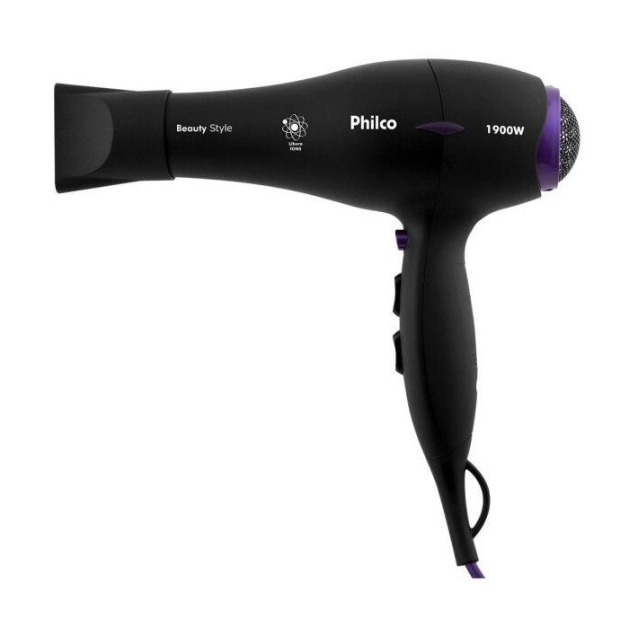 O Secador de Cabelos Beauty Style Philco é tão potente quanto eficaz, irá proteger seus cabelos e deixá-los sempre lindos!Libera íons de cargas elétricas negativas que neutralizam a eletricidade estática dos cabelos auxiliando no fechamento da cutícula dos fios, proporcionando efeito liso de salão.Oferece 2 opções de velocidades e 3 temperaturas que combinadas entre si oferecem o melhor resultado.Com o jato de ar frio a fixação dos penteados está reforçada.O bocal concentrador direciona o fluxo de ar facilitando a secagem e modelagem.Possui anel para pendurar após o uso.Seu Design é moderno, com o corpo e cabo emborrachados oferece maior facilidade no manuseio.Para fios bem cuidados todos os dias conte com o Secador de Cabelos Beauty Style Philco!