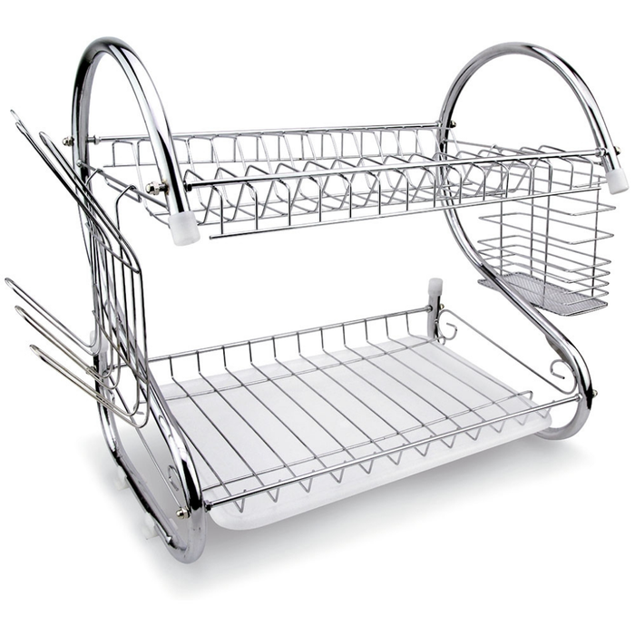 Em aço cromado para uma cozinha moderna, fácil utilização e montagem do produto, perfeito para secar várias louças em um lugar só.